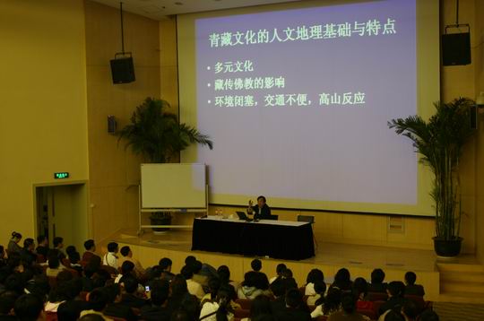 (通讯员:杨贵荣;摄影:姚凡)4月24日晚,学院第二教学楼600人报告厅济济一堂,这里正在举办第58期读书沙龙讲座活动。本次讲座主题为“青藏文化与青藏铁路”,主讲人是复旦大学历史地理研究所长葛剑雄教授。