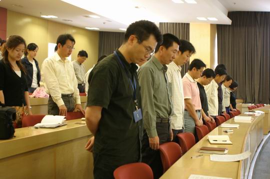 (通讯员:张各兴;摄影:李泓)5月21日,学院召开了分析检查阶段动员大会,学院学习实践活动领导小组成员及党员同志参加了会议。管一民副院长代表夏大慰院长对学习调研阶段的工作进行了总结并部署了分析检查阶段的工作安排,学院党支部及团委汇报了各自所负责课题的调研情况。刘勤副书记主持了会议。会议开始前,举行了简短的默哀仪式,向汶川大地震的遇难者表示哀悼。此前,在接到财政部学习实践活动领导小组下发的《关于学习实践科学发展观活动分析检查阶段工作安排的通知》后,我院党委于5月16日立即召开了专题党委会议,对我院学习调查阶段的工作及时进行了总结,并根据廖晓军副部长讲话精神研究讨论了我院分析检查阶段的具体工作安排。