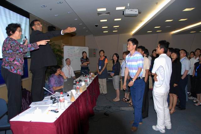 本次结果导向型培训班的总体目标是向学员们介绍有关现代成人学习理论与实践的最新发现,使学员们能够灵活应用被称之为“混合型”的学习方法,并以小组为单位最终设计出一项可持续的学习活动。纵观本次培训,小组讨论、角色扮演、游戏互动、头脑风暴、多媒体展示、小组报告等多种丰富的教学形式,崭新的成人学习理论、参与体验式互动学习和“言传身教”的理念贯穿整个学习活动的始终。整合世界银行诸多教育专家智慧的“WBI学习设计过程”概念图不仅成为学员在本次培训的实践操作环节的重要工具,也为学员在未来现实的学习活动设计提供了有价值参考。