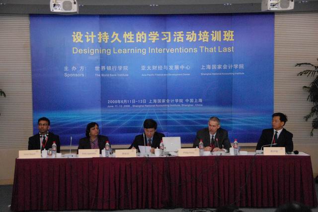 (通讯员:王颖)6月11日至13日,由亚太财经与发展中心(AFDC)与世界银行学院(WBI)联合主办的“设计持久性的学习活动”培训班在上海国家会计学院成功举办。世界银行学院亚太区项目部主任Philip Karp先生与上海国家会计学院李扣庆副院长分别作了热情洋溢的开幕致辞。来自复旦大学、上海交通大学、上海财经大学、中欧国际工商学院、中国电力投资集团公司高级培训中心、亚洲城市清洁空气行动中心、中国国际扶贫中心、环境保护部环境保护对外合作中心、厦门国家会计学院、上海国家会计学院、亚太财经与发展中心等21家高校以及培训机构的65名学员参加了为期三天的培训。
