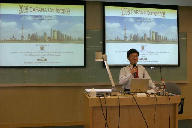 (通讯员:李艳、李泓;摄影:李泓)6月12日-13日,北美华人会计教授协会(CAPANA)第一次会计年会在我院举行。年会由北美华人会计教授协会主办,我院和香港中文大学(中大)将共同协办这次会议。6月12日上午举行了简单而又隆重的开幕式,李扣庆副院长代表我院致辞