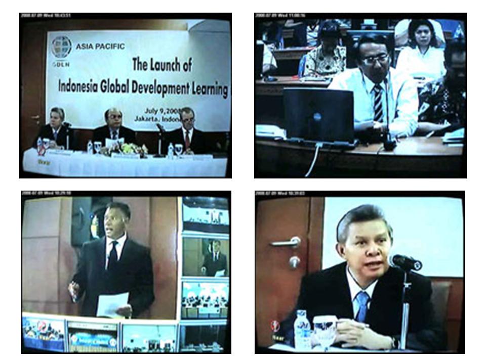 会议第二天,印尼GDLN网络启动仪式由世行高级联络官Stan Grant主持,在印尼教育部部长Banmbang Sudibyo先生与世行东亚区联络部主管Peter Stephens先生围绕“连接Connecting,分享Sharing,学习 Learning”的精彩主题发言中顺利举行。世行驻菲律宾办公室、越南远程信息中心以及印尼国内廖内群岛大学、印尼大学、巴厘岛乌达亚大学、哈山努丁大学等四所大学的区域DLC通过远程视频方式参加了启动仪式并进行远程互动交流;同时,印尼国内57个新建立的远程学习中心也远程观摩了该启动仪式的全过程。印尼GDLN网络作为全球发展学习网络-亚太区域协会的一个重要成员,于2006年底建立完成了印尼高等教育网络(INHERENT),覆盖了印尼全国82所公立大学、140所私立大学、10多所高等教育机构等234所远程学习中心,旨在通过对话、学习和研讨等方式促进印尼官商学之间的交流和知识分享,该网络的正式启动对于印尼高等教育和私营部门的发展以及GDLN区域内的网络资源共享具有重要的推动作用。