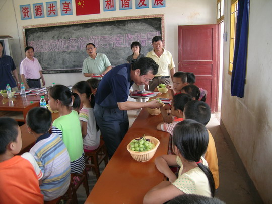此时,正是孩子们早读时间,每个教室里都传出琅琅的读书声。来到教学楼的二楼远程教室,罗家小说校长向管一民副院长介绍了近些年学校的发展。他说这些年在上海国家会计学院捐助下学校发展很快,今年学校又得到市教委的5万元财政支持,学校利用这笔钱以及学校自筹的2万元在暑期进行一轮大翻修工程:拆除了破损严重的低矮平房,新建了蓝球场,更换了校门,同时将校园里原来一遇到下雨天就污泥沾脚的土地全部更换成水门汀地。