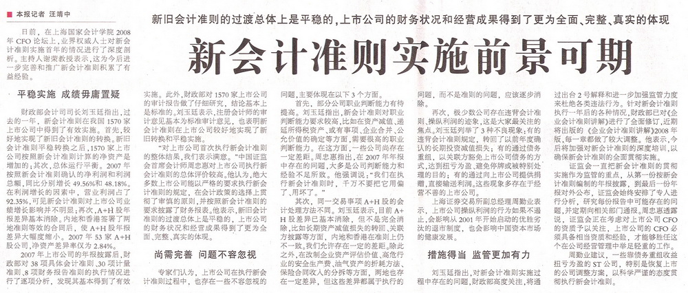 《中国财经报》2008年9月19日:新会计准则实施前景可期