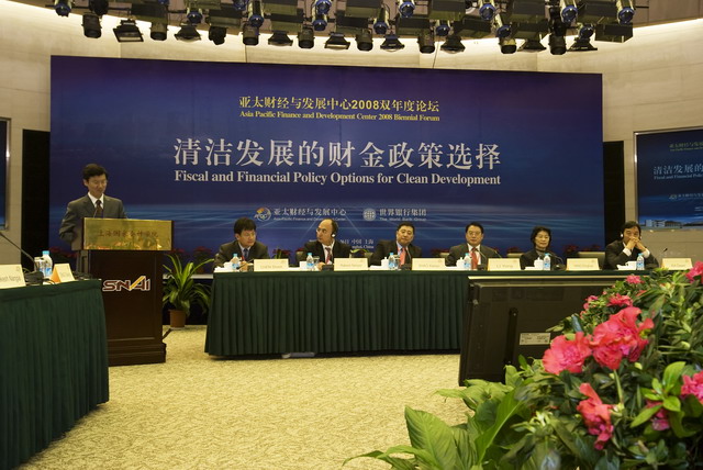 (通讯员:王颖;摄影:盛祥)10月25日至26日,由财政部亚太财经与发展中心(AFDC)和世界银行联合主办的“亚太财经与发展中心2008双年度论坛:清洁发展的财金政策选择”在上海国家会计学院国际会议中心成功举办。该论坛得到了上海市人民政府、亚洲开发银行以及多个国家相关政府部门、企业界和学术界的大力支持。除了来自20个国家的一百多名代表在上海现场聆听外,来自越南财政部、环保基金等机构的36名代表通过全球发展学习网络远程参与了该论坛。