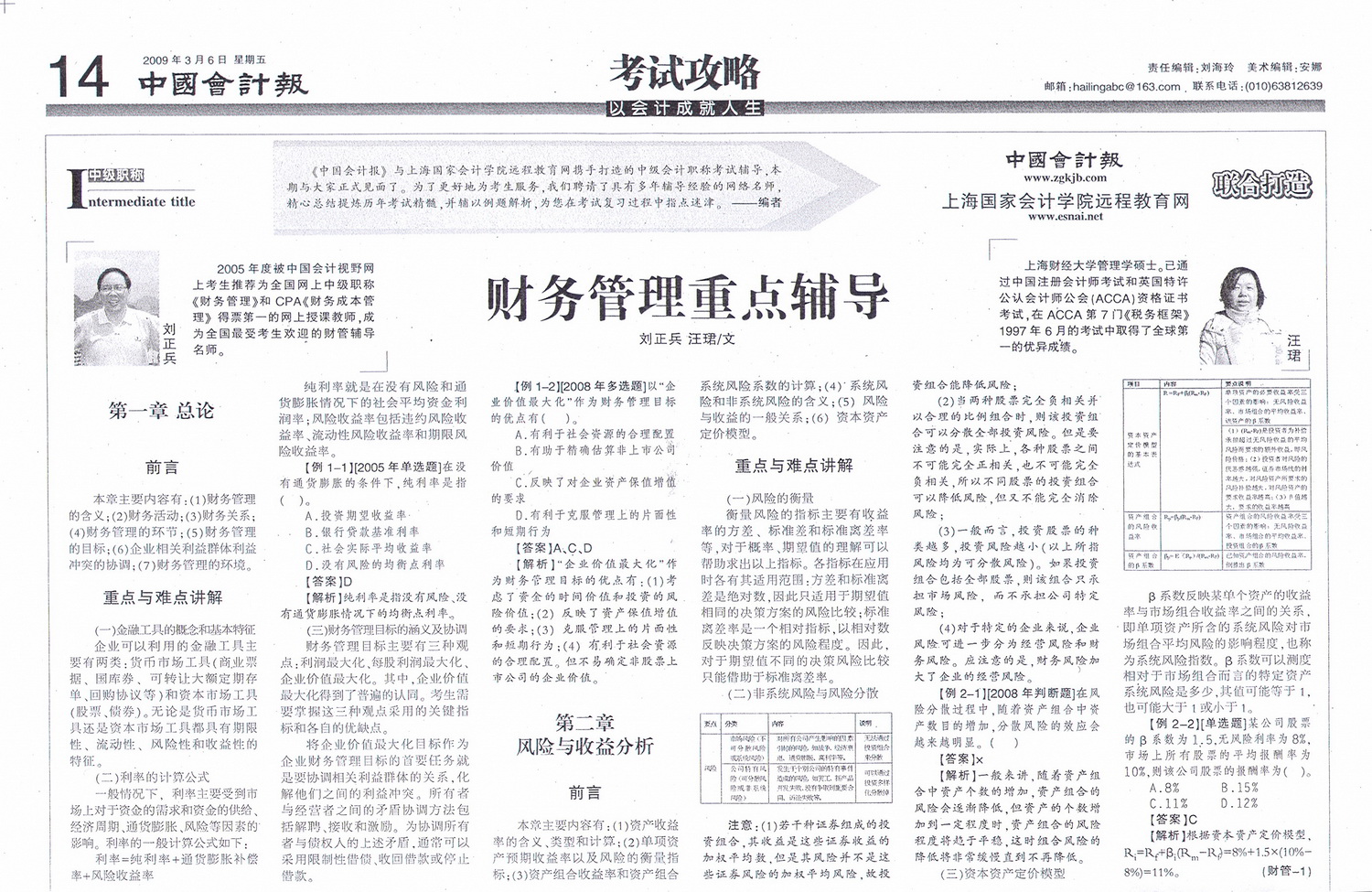 《中国会计报》2009年3月6日 第14版:考试攻略