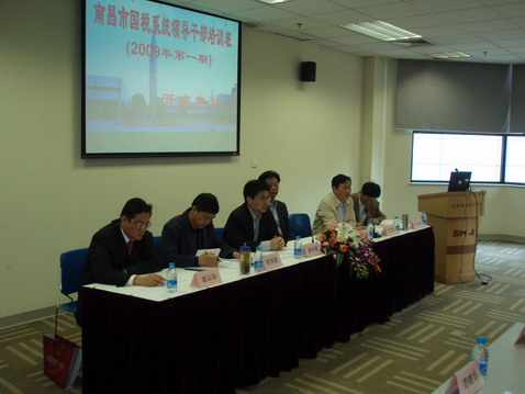 南昌方面对此次培训相当重视,由南昌市国税局局长曾光辉亲自带队,参加此次培训的学员包括了南昌市国税局市局机关各处室处长、主任及各下属各分局的局长、副局长共计六十余人。在开班仪式上,曾局长向全体学员指出,此次培训集中了南昌市国税系统一多半以上的领导干部,希望大家能够在十天的时间里,端正姿态,认真学习,充分交流,碰撞出智慧的火花,更好的充实自己,把课堂上的所学所想结合到实际工作中,在当前全球金融危机的形势下更好的完成国家税收任务。我院谢荣副院长受邀参加了开班仪式,并就学院的基本情况和项目情况向学员们进行了简明扼要的介绍。