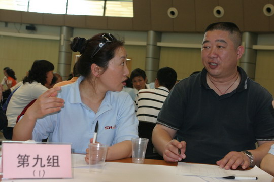 在上午的团队组建和团队展示环节中,200名学员被分成20个小组,在简短的自我介绍和相互熟悉之后,学员们迅速融入了自己的团队,他们绞尽脑汁,纷纷献计献策,在短时间内建立了各具特色的诸多团队。在接下来的团队展示中,“潜力股”“野战军”“大雁队”纷纷来到前台,他们或诙谐风趣,或慷慨激昂,又或载歌载舞,多角度全方位的展示了自己在短短三十分钟内形成的团队文化,诺大的国际会议中心顿时淹没在欢笑声和掌声的海洋中。