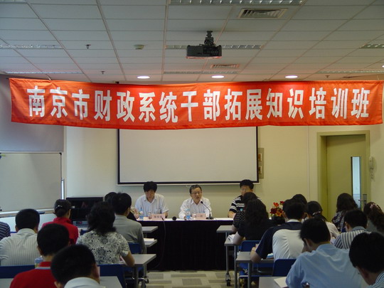 (通讯员、摄影:郭峰)为了进一步提高南京市财政系统干部的业务素质和管理能力,南京市财政局委托学院举办 “南京市财政系统干部拓展知识培训班”,6月2日举行了开班典礼,南京市财政局副局长张东宝、人事教育处处长曹毅,我院副院长管一民等领导出席了开班典礼。