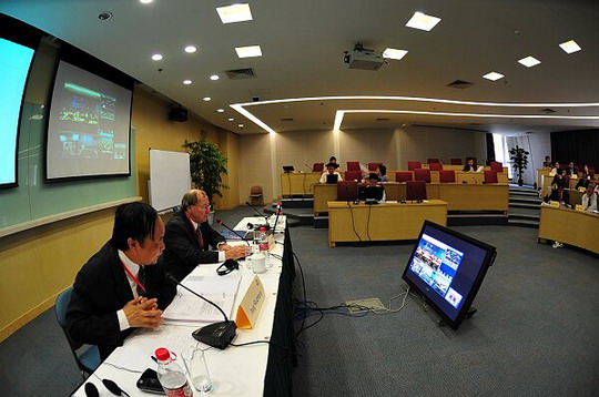 会议现场与越南、菲律宾、日本、斯里兰卡等站点进行远程互动
