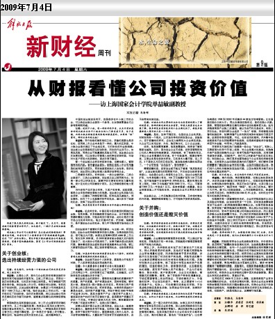 《解放日报》2009年7月4日