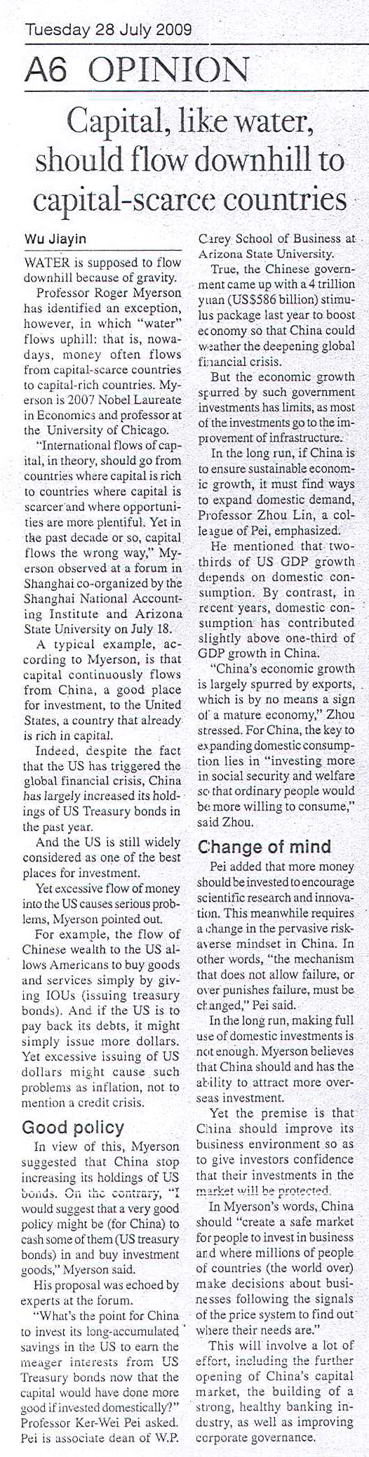 <Shanghai Daily> 28 July 2009 A6