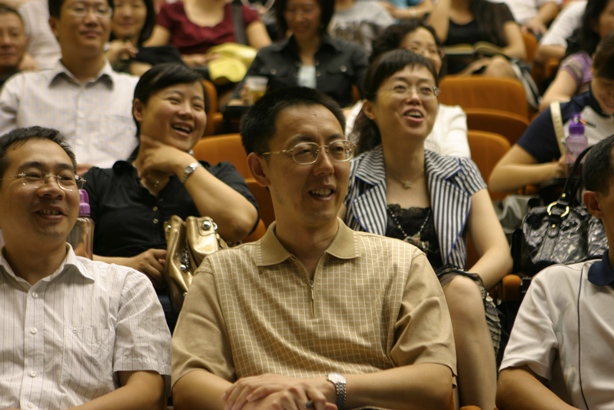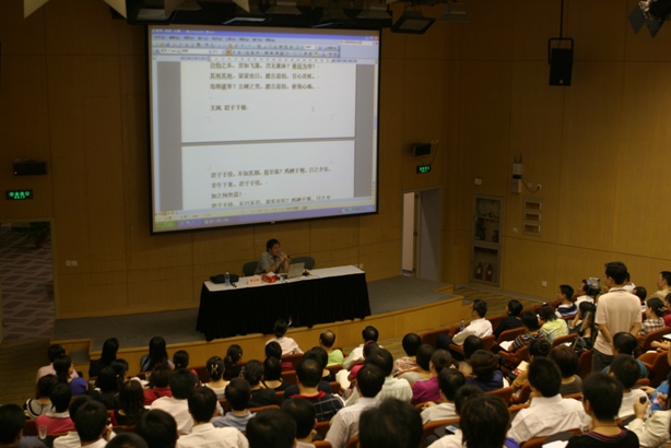 整个讲座中骆老师穿插着带领大家欣赏《萚兮》、《叔于田》、《野有死麕》、《静女》、《月出》、《关雎》、《谷风》等诗篇。骆教授幽默的语言和可爱神态惹得济济一堂听众笑声不断。最后,骆教授微笑道:《诗经》很可爱,读《诗经》是一件快乐的事,希望大家喜欢《诗经》。(编辑:李泓)