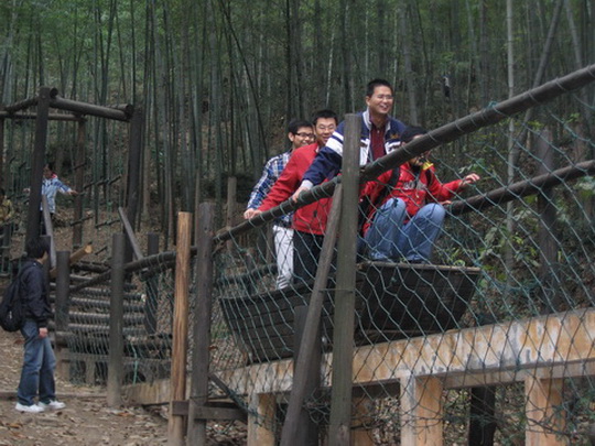 竹海乐园的游戏项目,更让同学们兴奋不已: “八卦迷宫”神秘不已、“芳草滑道”动感刺激; “长征之路”、 “100米障碍赛”锻炼了胆量、体现了智慧。水帘猕猴山、捉鳅区、双人网床等处处留下了欢声笑语。在射箭场,白琼莹同学拉开满弓,奋力射出的一箭,牢牢地钉在了石象上,被大家惊叹地称为“现代的飞将军”。大家尽情游嬉,让久居都市的人们有一种返璞归真的感觉。