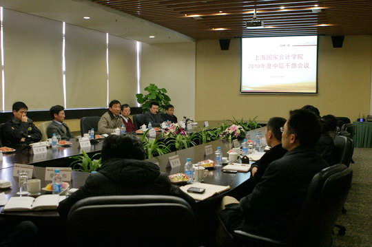 管一民副院长代表院领导班子就2009年的财务状况、部门指标完成情况等向会议作了说明,并初步下达了2010年各业务部门的指标任务。夏院长在随后的讲话中强调,大家应在回眸十年发展历程时,冷静审视自身的缺陷与不足,鼓舞精神,再战江湖。在二次发展的拐点处,充满信心地展望未来发展之路,立足“高拓”,以EDP和学位教育为两个突破点,以师资和市场营销为两个抓手,促整合,深挖掘,统一认识,百尺竿头,更上一层,走好走稳每一步发展新路。