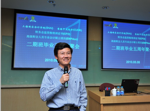 参加返校活动的同学逐一向老师和同窗介绍了自己毕业后五年中的发展情况,并表示通过学习,对提升职业发展有极大帮助,很多知识已经在工作中逐步得到应用。在怀念过去美好校园生活的同时,同学们还对各自所在的行业进行了分析和经验的分享。百丞税务咨询有限公司总经理朱自永这样描述自己的EMPAcc学习经历:“2002年,我报了EMPAcc项目,之后的每个月,我基本上都是带着问题来到课堂,然后带着答案回去大干一场。”几年工夫,在他的运筹帷幄中,百丞税务咨询有限公司逐渐壮大起来,目前已在北京、上海、济南、青岛、潍坊、东营等地设立了分支机构。班长周德孚至今也还清晰地记得当时读书时的情景:“EMPAcc项目课程非常系统,也很严谨,我读得很苦,但是读完以后发现自己的思维不仅更细致更全面了,人文知识的沁透也令我提升了个人修养。”如今,他回忆起同学之间无论是生活上的互相帮助还是事业上的互相支持,都觉得收获良多。