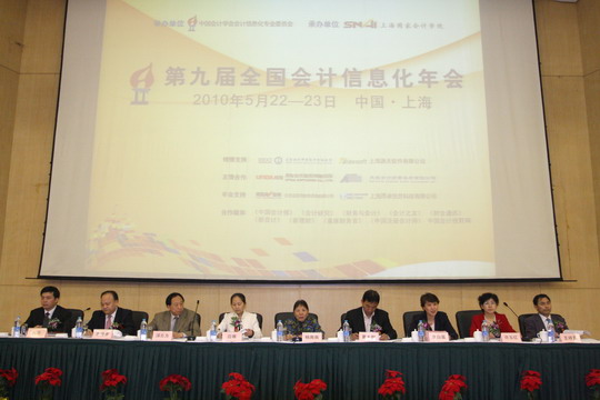 (通讯员:赵健;摄影:杨武)2010年5月22日,由中国会计学会会计信息化专业委员会主办、上海国家会计学院承办的第九届全国会计信息化年会隆重举行。中国会计学会会计信息化专业委员会主任委员杨周南教授主持了开幕式。来自国内各高校、科研机构、实务界和媒体单位的代表共250余人出席了会议。
