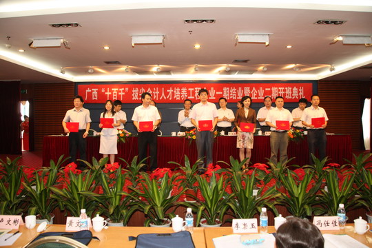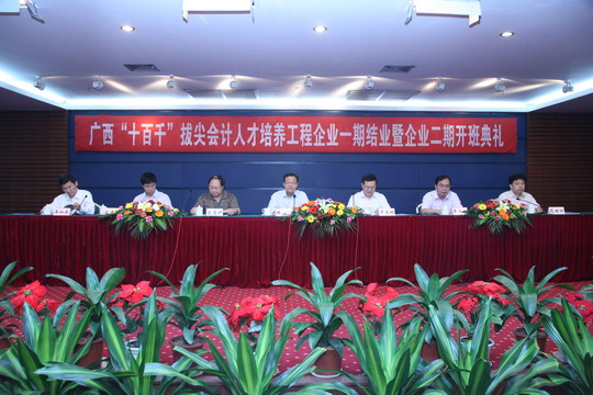 (通讯员:王欣)6月11日上午,广西“十百千”拔尖会计人才培养工程企业一期结业暨企业二期开班典礼在南宁市隆重举行。广西壮族自治区党委常委、自治区人民政府副主席陈武、自治区财政厅厅长苏道俨、财政部会计司副巡视员李玉环、我院副院长李扣庆出席开班仪式并讲话。广西人力资源和社会保障厅副厅长刘建宏、国资委聂江武副主任,我院教务部主任卢文彬出席了开班仪式并对结业的企业一期学员和选拔出来的企业二期学员表示祝贺,共有44名学员顺利结业并获得上海国家会计学院财务总监资格证书。