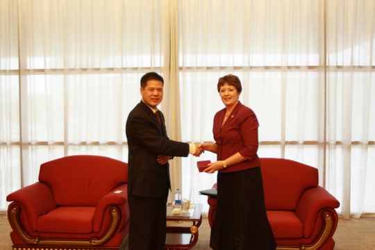 (通讯员/摄影:王子元)6月25日下午,澳大利亚(澳洲)会计师公会(NIA)主席Christine Leetham 女士和总裁Andrew Conway先生在其中国区首席代表陈荣女士及上海办事处高贵女士的陪同下访问我院。我院教务部部主任卢文彬在项目主管王欣等的陪同下与来宾进行了亲切交流会谈。