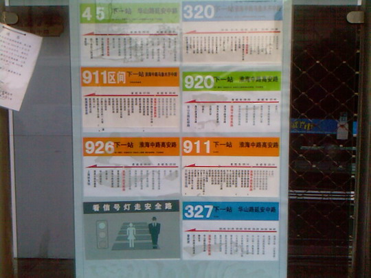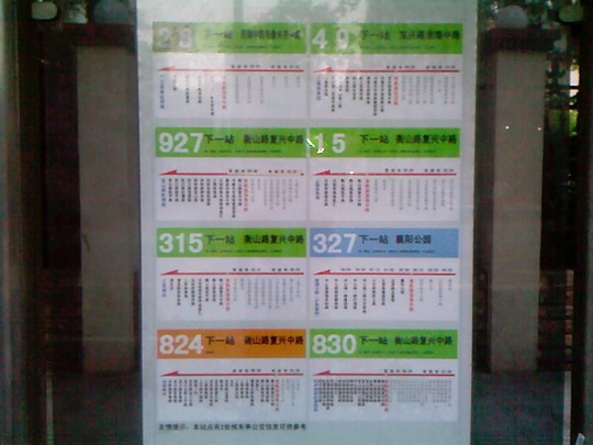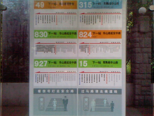 顺着电梯不断拥上一批批的上班族,拿着各式皮包。尽管行色匆匆,但很多人手里还攥着报纸。与他们交错,我体会着上海的节奏。随着上班高峰的临近,上来问路的人也迅速增加。从医院到图书馆;从影院到领事馆;从保险公司到银行会所;从地铁到公交站点换乘;甚至从推荐餐饮小吃到咨询游园购物,什么样的问题都会出现。凭着几天的“用功”准备和多年居住上海的经历,我从容应对,答案顺手拈来。甚至都能根据来人情况预判可能提的问题。(下面是我拍的一些站牌照片,你们知道都是在哪里拍的吗?)
