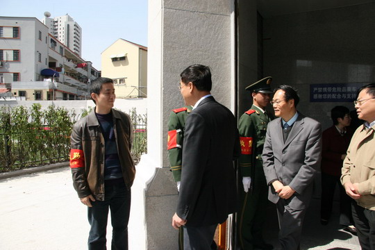 10点多,我刚给人指完路,忽然听 “咕噜噜”一声,原来肚子开始提意见了,从早上4点多吃的早饭,已经快6小时没补充了。我赶紧拿起矿泉水往嘴里一阵猛灌。正喝着呢,楼梯上忽然上来一群人,有的挎着相机、有的扛着摄像机。我正在诧异,有人对我说原来市委组织部的沈部长和市公安局的张局长来慰问地铁值勤人员了,陪同的还有市级机关工委徐副书记等。沈部长对我们十分关心,详细询问了我们上下岗的交通问题、餐饮情况以及工作中遇到的困难。当得知这些问题都得到妥善安排时,沈部长很欣慰。最后沈部长为我们送上慰问品—毛巾和矿泉水,鼓励我们站好岗,为世博、为上海作贡献。