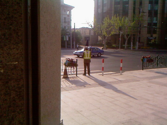 4. 武警站门内,我站室外平台下,这样是最亲和的。这是常熟路7号口特有的站位法,一方面这样的站位让更多的过路人看到我,或许可以回答更多人的问题。另一方面这样站位还有一个好处,就是能随时提醒那些寻路的人及时注意脚下的台阶(看了太多人的踉跄,实在于心不忍)