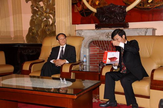 李扣庆副主任向阮工业副部长赠送世博会纪念品