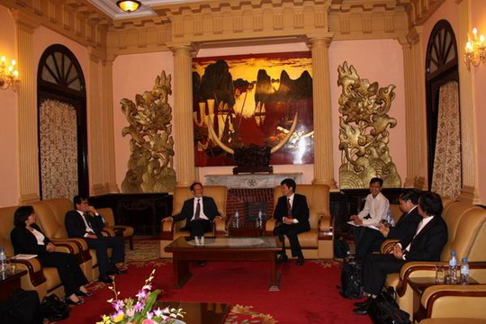 会见中,阮工业副部长首先介绍了越南农业和农村发展的情况。他在介绍中指出,中国在三农问题上的很多经验正在被越南学习和借鉴,他本人在十年前就农业和农村发展问题专程到中国农村进行了考察。他认为,中国的“离农不离乡”的农村发展经验非常值得越南学习。越南推动农村和农业发展政策的核心内容之一是增强农民的发展能力。阮副部长在介绍中还提出,越共七届一中全会提出三农问题后,陆续加大了对农村和农业发展的支持力度。越南财政将拿出20亿美元支持农民创业,计划全国选出60个最贫穷的县作为试点,通过财政和金融政策予以扶持。越南政府还提出开展新农村工业建设,学习中国建设社会主义新农村的理念和做法,首先在11个村进行试点,年末试点工作结束后,将在全国50%的村普及试点村的经验。在谈到农村和农业发展中的问题时,阮副部长指出,全部由中央政府提供资金的做法可能存在问题,现在正在考虑由中央政府、地方政府和农民个人共同分担的方式。阮副部长最后提出,几乎对所有国家来说,农民都是最苦的群体,越南非常希望中中国学到支持三农的财政机制。