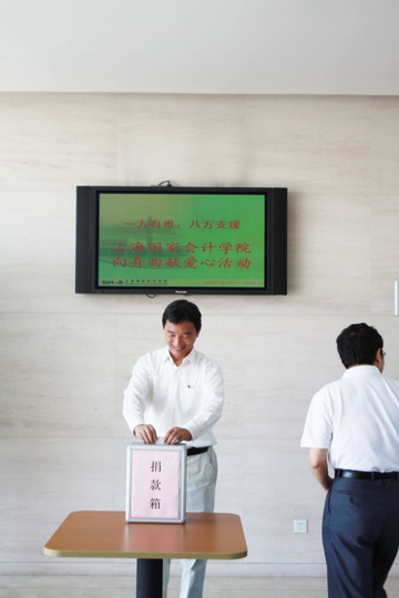 捐款仪式开始,夏大慰书记带领院领导班子首先捐款,接下来,学院各部门领导与员工一一来到捐款箱前进行捐款,短短几分钟,捐款额达到了17481元。特别值得一提的是,除了学院正式员工外,学院超市员工也主动积极参与捐款。党委办公室将于今日集中把款项及时汇至市级机关工会工委上海银行白玉支行,希望我们的爱心能为灾区人民带去一些安慰和希望。(编辑:李泓)