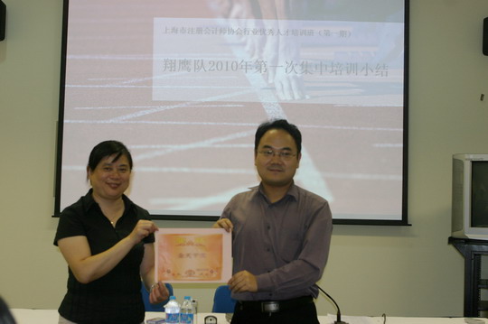 9月4日晚,来自德勤华永会计师事务所的虞扬班长主持了第一次班会,每个小组需要在10分钟的时间内展示一周的学习心得。为了这10分钟,各小组八仙过海、各显神通。第二小组借助网络,在PPT中集中了所有老师的照片,通过各位老师的授课经典名言,回顾了一周的学习收获,最终以综合实力摘得PPT制作与演示俱佳的“金天平奖”。第三小组的PPT不仅展示了小组成员的照片和个人名言,同时还配上了背景音乐,精美的PPT被全班同学评为“最佳制作奖”。第五小组展示时采用了模拟教学方法,小组长饰演主持人,小组成员分别饰演本次培训的课程老师,将课程内容娓娓道来。最终第五小组以独特的演示方式夺得本期培训班学习小结活动的“最佳演示奖”。(编辑:李泓)