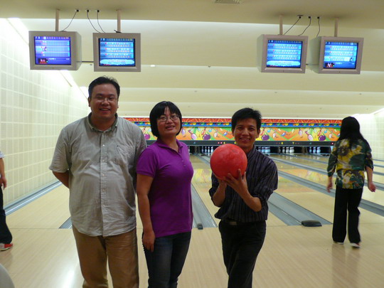 一个小时的保龄球赛很快就结束了。每个参赛的学员都收获颇丰。动作最酷的金嘉民学员得到了最佳动作奖,团体成绩最好的队伍由封国昌,樊家震和卢海清组成,他们得到了321分,孙东霖和封国昌2位学员因为3次绝妙的大满贯而获得大家的赞誉。成绩最低的队伍也不落后,沈晓东和程欢瑜得到了好好学习奖。另外比赛还决出了男单、女单,以及团体参与奖若干。
