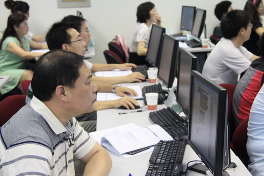 EMPAcc项目的IT技能辅导课程由信息远程部的刘勤教授,屈伊春副教授,以及沈鹏飞副教授共同承担。他们分别就IT伦理,信息安全,以及信息科技能力等方面进行了各有侧重的讲述。刘教授的课程旁征博引。由于引入了一些社会学和哲学的概念,这门课更像是在宏观层面上讨论IT技术同人类的社会结构以及知识发展的关系。尽管如此,刘教授丰富的教学经验和对学生的解读能力把一门科技层面的形而上的课程阐述的形象生动,得到了学员们的好评。而屈、沈2位老师的课程更以实际操作为导向,课程的授课内容也为考试服务。虽则如此,学员们的学习热情并未减低,不少学员表示,通过屈、沈老师的讲解,大家学习到了很多EXCEL、WORD、以及杀毒软件的小窍门,对于他们以后实用该软件简化工作起了不小的作用。