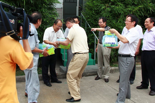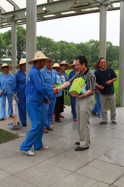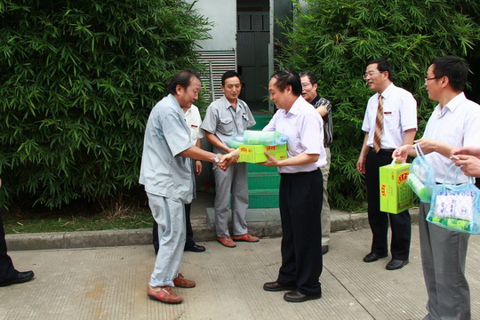 8月1日下午,管一民副院长带领各部门负责同志为安保、工程、园林等奋战在炎夏中的物业员工带来了凉茶、毛巾、沐浴露等消暑降温的慰问品,更带来了院领导和各位学院员工的亲切问候。管院长叮嘱各物业负责人,一定要注意为物业员工营造较为舒适的工作环境,做好防暑降温措施,保证物业员工身体健康。同时,各物业公司一定要注意做好夏季安全生产工作,保证学院的正常运转,提供更加优质的物业服务,为学院的事业发展做出更大的贡献。