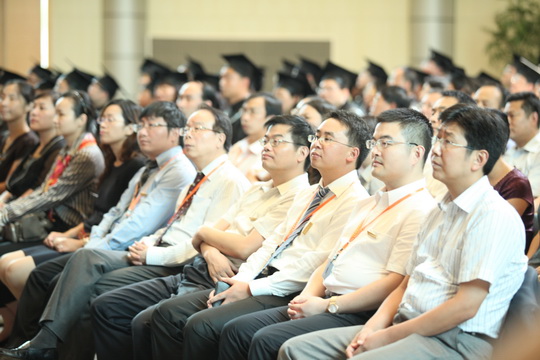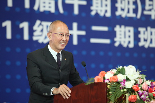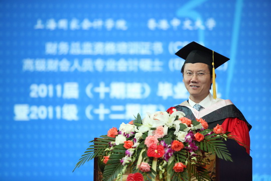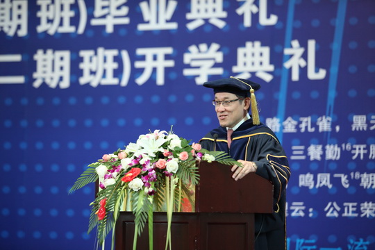 李扣庆副院长很深情地把此次开学毕业典礼比作是飘着新香的面包要出炉,又一炉新的面包将入炉。在这样一个特殊的时刻,他代表学院所有老师对经过两年刻苦学习,顺利取得学位的十期班同学,表示最衷心的祝贺;对通过层层选拔,最后能够进入到EMPAcc项目十二期班的新同学,表示热烈的欢迎。他希望毕业的同学能将自己所学到的知识运用到今后的工作中,回报社会,他也衷心地期望十二期班同学能像十期班同学一样,珍惜来之不易的学习机会,发愤图强,学有所成,为自己将来职业生涯新的发展打下坚实的基础。最后李扣庆副院长把江泽民同志亲自总结的井冈山精神即 “坚定信念、艰苦奋斗”、“实事求是,敢闯新路”和“依靠群众,勇于胜利” 送给在座的学员共勉。