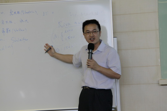 贺学会教授是复旦大学经济学博士,北京大学金融学博士后,更是我院金融学领域的明星教师。除了研究证券与期货投资、金融理财,行为金融学也是贺教授的主要研究方向之一。他还是行为金融学名著《超越恐惧和贪婪》一书的中文译者,此书已成为国内理论界和业内人士案头的必备之作。他用他那悦耳的嗓音,适中的语速,向同学们娓娓道来行为金融学的前世今生。