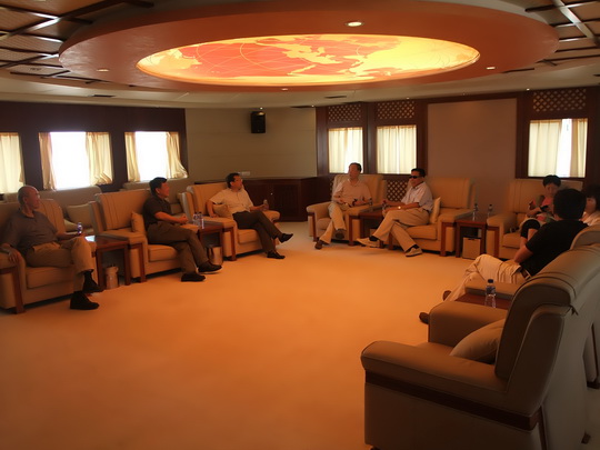 上午10点,大家陆续来到东海大桥处。同学相见,分外亲切,互相寒暄问候,很快就热闹一团。东道主周赤董事长早已做好了相关准备,他热情洋溢地招呼每位学友,给大家详细介绍同盛集团和整个洋山深水港的情况,在浓缩的地图上指点江山,挥斥方遒。