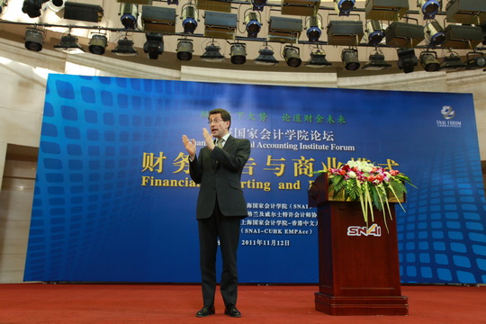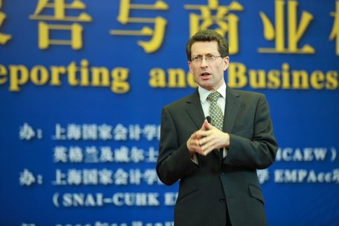 (通讯员:曹巧波;摄影:角度摄影)习以为常的做法,如果换个角度去看,或许会有更广阔的思考空间,或许会带来更多值得坚持的理由。11月12日下午,英格兰及威尔士特许会计师公会(ICAEW)技术执行总监罗伯特·霍奇金森来我院演讲。从财务职能及会计师的挑战,从商业模式和财务报告的关系,从国际财务报告准则的未来和中国会计界的机会,罗伯特·霍奇金森花了三个小时和数百位校友做了探讨。论坛由李扣庆副院长主持。