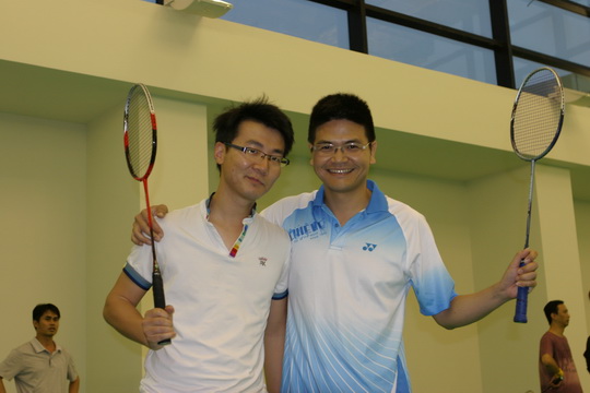 别看各位学员场下热闹非凡,打成一片,一上战场,各个严阵以待,霸气十足。男子比赛与女子比赛分别在两个场地上同时进行。女子赛场上,广西学员明显略胜一筹,体育大省的巾帼精英们果然名不虚传,相比之下,我们金融中心的白领们就略显柔弱了。赛场上,不时有男生上前给女生们传授经验,不上场的同学们也都积极的在旁边加油鼓劲,现场气氛异常热烈。遗憾的是,上海队的女单、女双还是输给了广西女生。而男子赛场上,双方比分咬的很紧,局势颇为紧张,但最终,上海的男生们奋力比拼,男单、男双均胜出。看起来,上海、广西各赢两场,大有打平之势,接下来的混双就成了角逐胜负的焦点所在。广西的女同胞们果然强大,他们巾帼不让须眉,赛场上独挡一面,三场混双都因女生的强势而赢得了比赛。最终,广西赢得5场比赛,以压倒性优势战胜了上海队。这其中女生是绝对功不可没的;而上海队也虽败犹荣,一来他们体现了友谊第一比赛第二的运动精神,二来作为东道主也体现了谦和之道。双方通过这次比赛增进了交流,大家互帮互助,团结的更为紧密了,同时,双方也增进了了解,为后期的联谊晚会奠定了基础。(编辑:李泓)