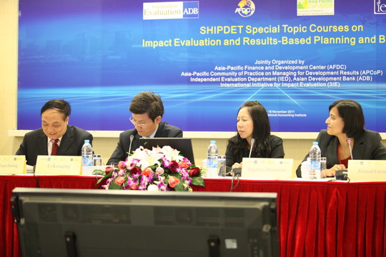 (通讯员:吴宁沁;摄影:角度摄影)亚太财经与发展中心,亚洲开发银行以及影响评价国际倡议组织共同主办的2011年SHIPDET影响评价与绩效预算短期课程于2011年11月14日在上海国家会计学院开班。来自哈萨克斯坦、吉尔吉斯、塔吉克斯坦、印尼、柬埔寨、孟加拉国国、马尔代夫、蒙古、尼泊尔等十多个国家的近六十名政府官员将参加为期五天的培训。