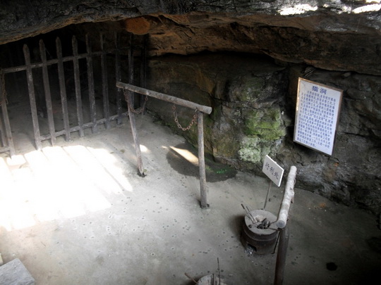 这里最让人毛骨悚然的当数位于半山腰的“猫洞”,那是审问和拷打在押人员的魔窟,因后来发现在这里审讯革命者时无论怎样施刑,再大声、再撕心裂肺的叫声也传不出去,于是改名为“妙洞”,成为在革命者身上检验各种刑具优劣的最妙场所。曾被关押在此的李任夫回忆说:刑讯逼供的残酷惨毒一言难尽。一般体刑毒打属家常便饭;水火交攻(开水烫、铁火烧)亦时有所闻;钻刺之家更为痛苦,受刑之人指甲全脱不宜再生;“披麻戴孝”的刑法最令人痛不欲生(用辣椒和辛辣物品涂抹在已打得皮开肉绽的革命者身上,再用纱布紧紧缠绕抛置于烈日曝晒,过了多天后,当纱布与肉长在一起时再一层层剥开……)