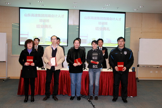 在之后的领导讲话中,王玉君总经理对我院的支持和帮助表示感谢,其中包括了学院领导亲自为本培训班授课及出席开班和结业典礼。另外他表示参训人员反映和培训效果都非常好,事实证明本次培训举办的非常成功,希望参训同事能将所学知识进行反思整理,结合工作把理论分析和综合,学以致用。谢荣副院长同时提出与山东高速集团达成长期合作,成为其人才战略的坚强后盾、培训基地的愿望。至此,本次山东高速集团高级会计培训班画上圆满句号。(编辑:李泓)