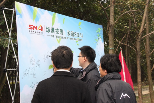 (通讯员:胡晓栋;摄影:刘廷和、窦金栋、刘铎)周四上午,雨后初晴、阳光暖人,上海国家会计学院“绿满校园 和谐SNAI”——创建“全国绿化模范单位” 携手共建生态校园典范植树活动在学院苗圃举行。夏大慰院长等院领导带领100多位学院员工一同参加了植树活动,在为校园播下一片新绿的同时,也用实际行动推动学院创建“全国绿化模范单位”工作。