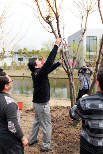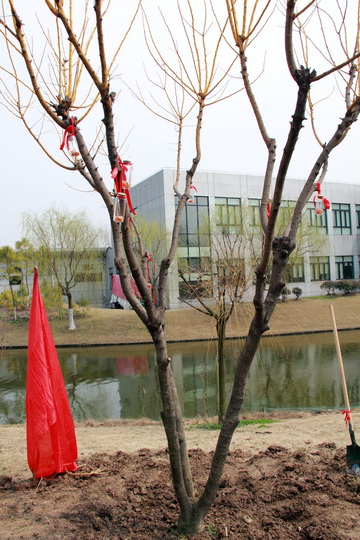 此次植树活动是学院创建“全国绿化模范单位”的内容之一,同时全院员工也在中写下了自己对学院创建“全国绿化模范单位”的支持和美好祝愿。本次植树活动后,樱花、海棠、红枫、紫薇、梅花等近千株新苗将很快在苗圃成行成列,成为校园的一片新绿。