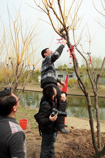 学院团委也趁着后勤植树活动,开展了“许愿时光瓶”活动,学院同事都把自己对学院、对自己的祝愿和五年后的愿景写到“时空胶囊”中,放入“许愿时光瓶”内,邀请了部门领导和院领导把许愿瓶高高挂在新树的枝头。(编辑:李泓)