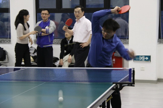 (通讯员:刘荣光,摄影:刘荣光)4月13日下午5点半,学院拓展中心乒乓球馆不时爆发出阵阵欢呼声。来自EMPAcc十二期班的学员们刚刚下课,许多学员还没来得及换下衬衣、西裤和皮鞋,便迫不及待地来到球馆参加班级“红四月”乒乓球比赛。
