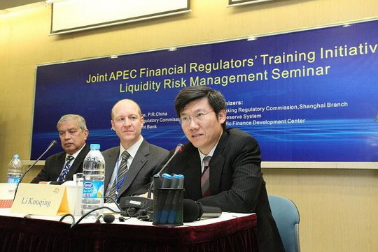 (通讯员:王伟旦)2012年4月16日,由亚太财经与发展中心(AFDC)、中国银行业监督管理委员会(CBRC)和亚洲开发银行(ADB)三方合办的流动性风险培训在上海国家会计学院拉开帷幕。亚太财经与发展中心李扣庆副主任,中国银行业监督管理委员会上海监管局马立新副局长,以及教师代表芝加哥联邦储备银行风险管理专家Adrian D"Silva、Bart Miller出席了开班仪式并讲话。开班仪式由彭润中处长主持。