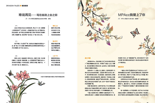 在金融界叱咤风云的校友,在全国乃至世界各地活跃的财会精英们是学院的最大骄傲,他们构成了年度“SNAI人物”。而学员们在校园内的点滴思绪、员工们勤恳工作的真实记录则是一道道美妙的“蟠龙絮语”。