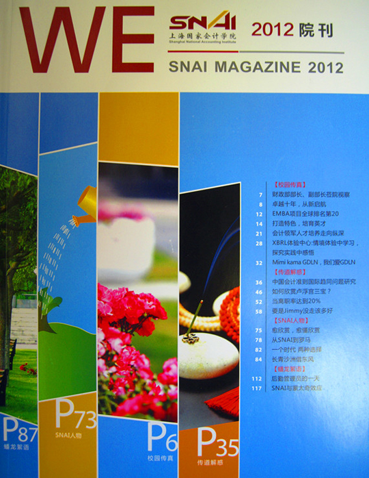 (撰稿:曹巧波)日前,上海国家会计学院2012年院刊已经印刷完毕,正在往全国各地的校友寄送,在校学员也可以在宿舍取阅。这是继2011年校庆特刊后的第二本院刊,总计近9万字。