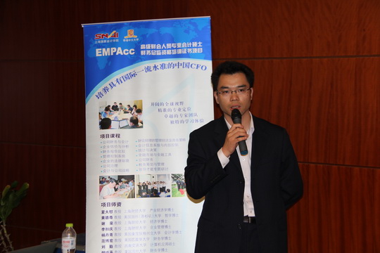 我院信息与远程教育部副主任尹成彦首先致辞,他介绍了我院基本概况及所提供的主要业务,指出在提供优质课程服务的同时,我院财经讲堂也着力为各位财会专业人士搭建和打造沟通和交流的平台,拓宽视野,积聚广泛的人脉资源。
