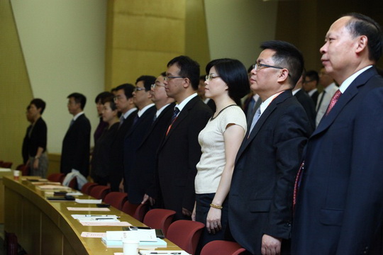 (撰稿:田蓓;摄影:角度)“现在我宣布开学典礼正式开始!请全体起立!奏中华人民共和国国歌和美国国歌!”在庄严的国歌声中,SNAI-ASU合作EMBA项目2012级新生开学典礼正式拉开了序幕。典礼由上海国家会计学院市场部/研究生部副主任汤超义博士主持,上海国家会计学院院长夏大慰教授、美国亚利桑那州立大学凯瑞商学院副院长贝克伟教授、上海国家会计学院副院长李扣庆教授、亚利桑那州立大学凯瑞商学院黄钰昌教授等中美嘉宾出席了本次典礼。
